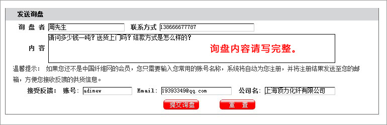 在產(chǎn)品頁面,你可以通過QQ、MSN、在線留言等方式與供應(yīng)商取得聯(lián)系,或直接在單個產(chǎn)品頁,給供應(yīng)商發(fā)送詢盤。