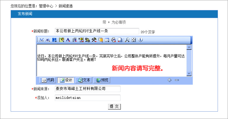 點擊發(fā)布新聞后面的:管理,即可編輯以往企業(yè)新聞。
